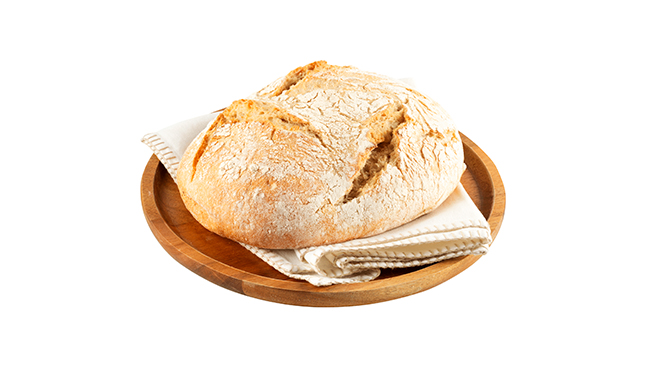 Pão de trigo e massa mãe, com muita hidratação. Possui um sabor suave, com o toque especial da massa mãe. Tem uma côdea crocante e miolo alveolado.