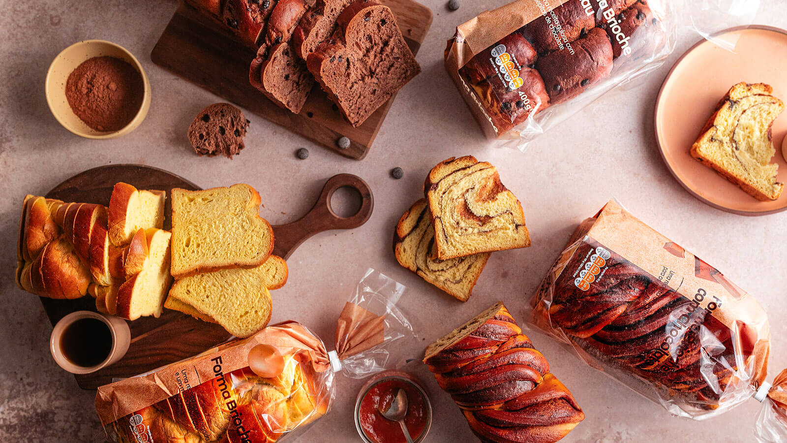 Uma gama superior de pão brioche, de aspeto marmoreado, ideal para os mais gulosos lá de casa! Esta receita amanteigada mantém o sabor doce, característico deste tipo de pão, mas com uma textura fresca e húmida pela adição de chocolate.