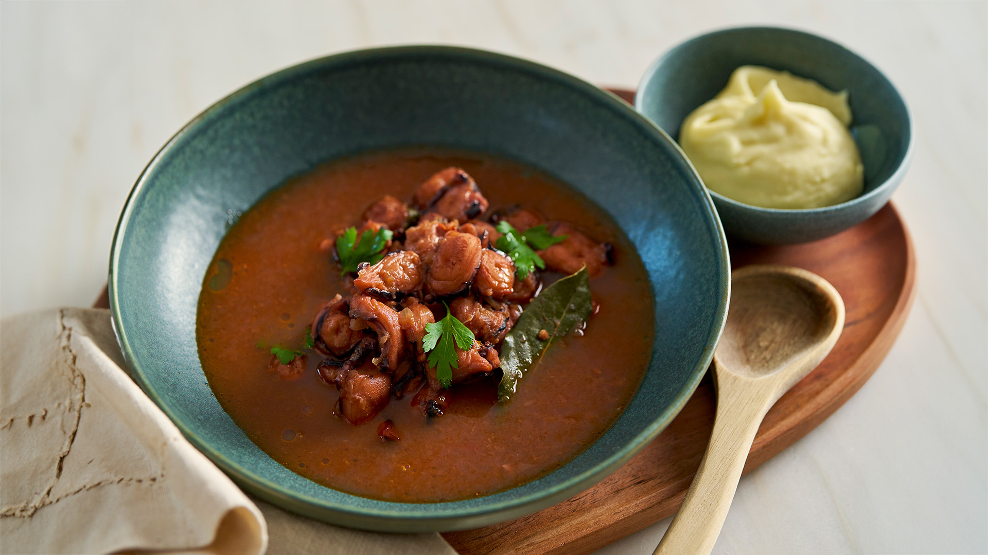 Coloque os tentáculos de pota num tabuleiro de forno grande.