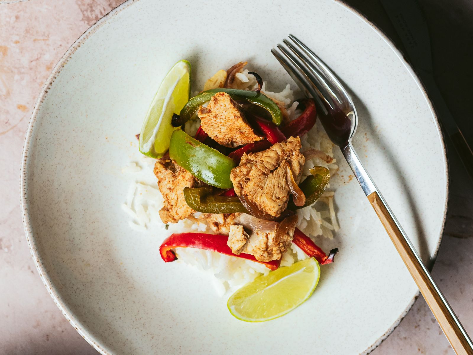 Numa frigideira com azeite, faça uma cebola caramelizada com o açúcar mascavado, o vinagre de sidra e o sal grosso. Depois é só juntar os legumes escaldados e o frango desfiado.