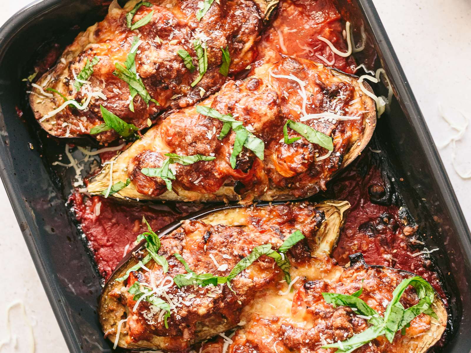 Colocar sobre o molho fatias de beringela, tomate e curgete alternadamente começando na margem da frigideira até ao centro, formando uma espiral.