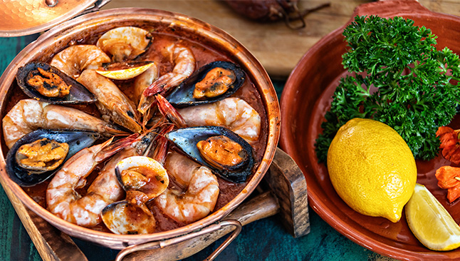 A gastronomia portuguesa é rica em pratos de marisco. Pratos tradicionais como o arroz de marisco ou a cataplana captam o verdadeiro sabor da costa portuguesa e são perfeitos para almoços e jantares em família ou entre amigos.