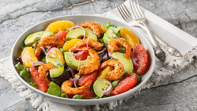 Salada de camarão com abacate