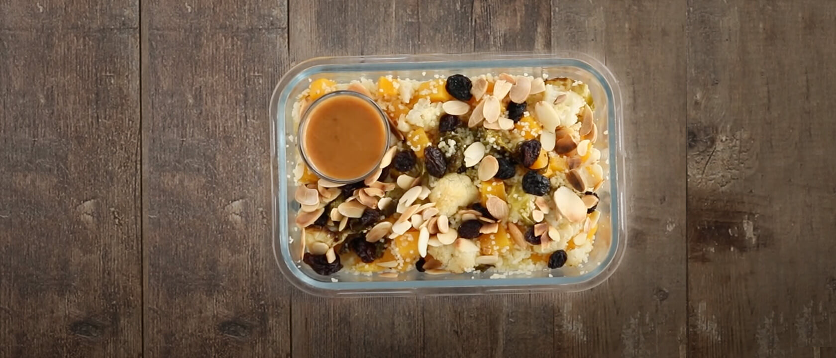 6. Polvilhe os legumes com as amêndoas e as uvas passas, e junte o molho.