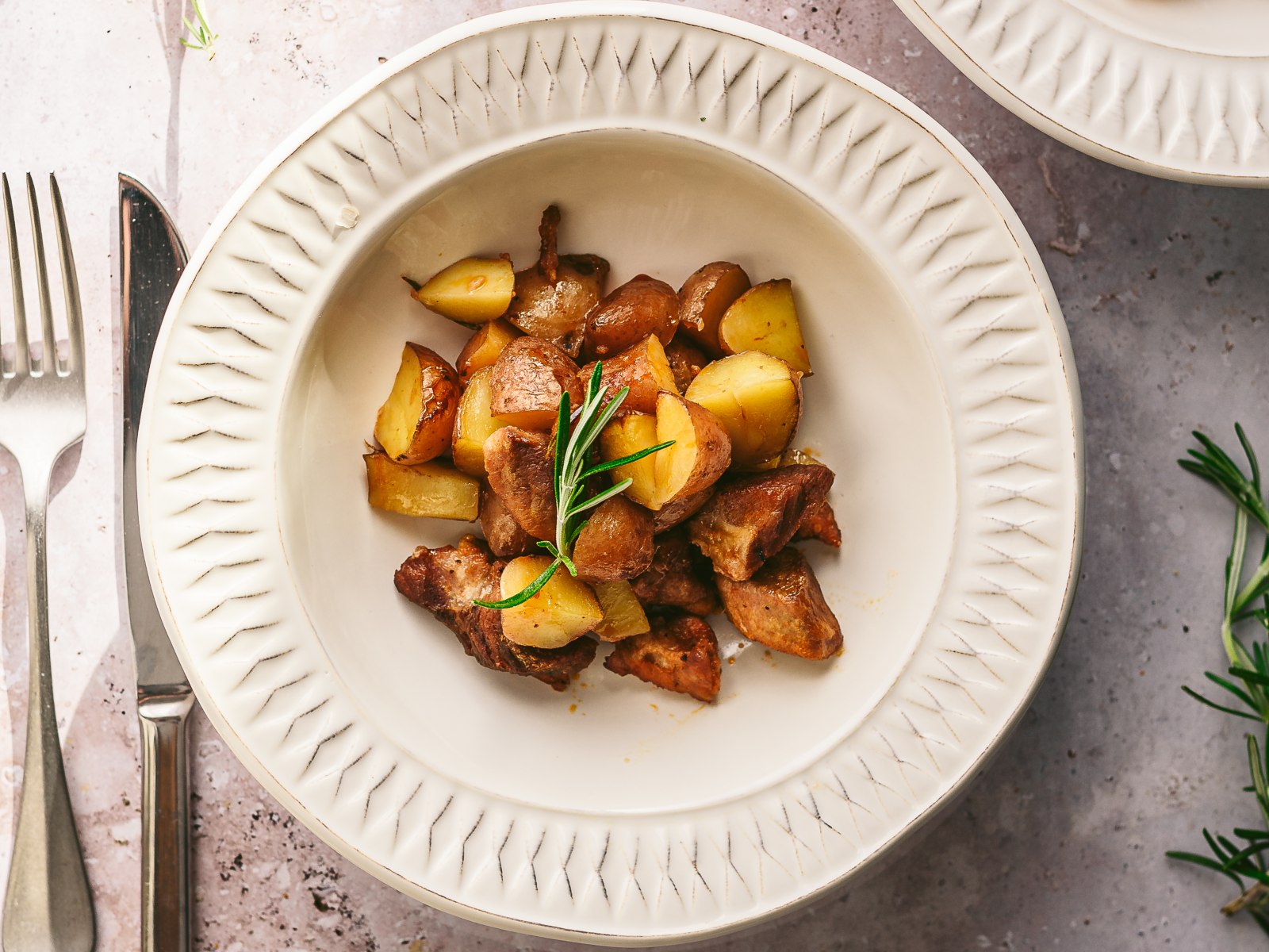 Coloque os rojões numa taça e tempere-os com os dentes de alho picados finamente, o sal, o pimentão-doce e o vinho branco. Envolva bem e reserve.