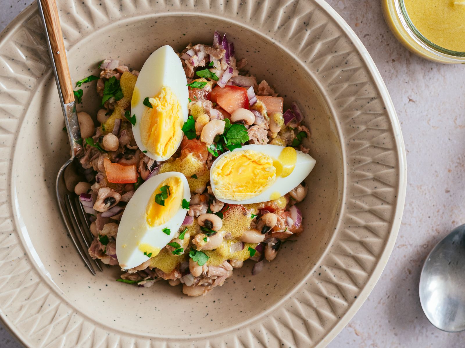 Para uma alimentação mais saudável, utilize apenas uma colher de café de sal, uma colher de sobremesa de vinagre e uma colher de sopa de azeite.