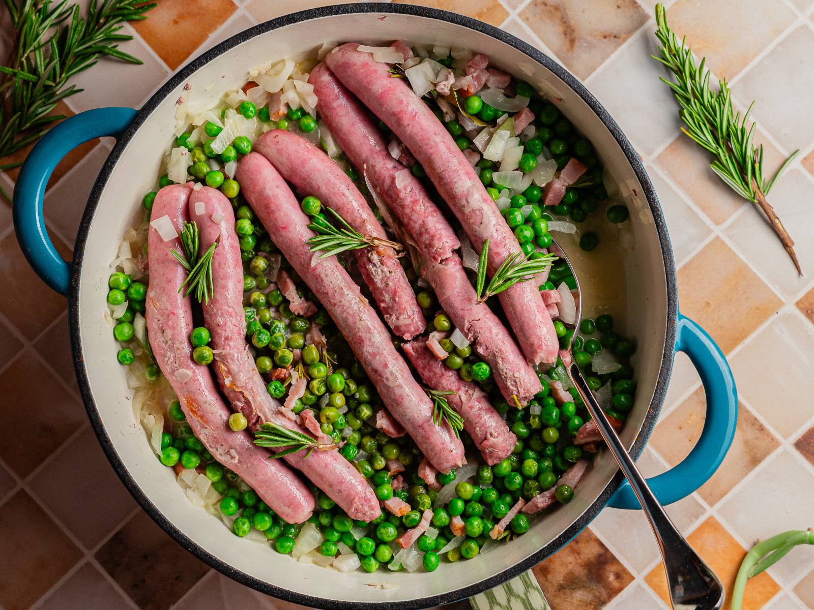 Entretanto, corte os pimentos em tiras finas e a cebola em meias-luas e salteie-as numa frigideira com um pouco de azeite.