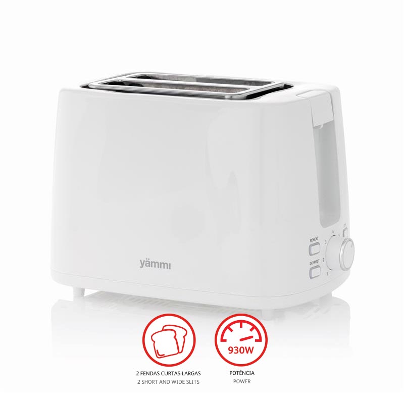 As 2 fendas foram projetadas para acomodar diferentes tipos de pães, sejam finos ou mais largos, garantindo que possa desfrutar de torradas perfeitamente ajustadas ao seu gosto e com resultados uniformes em ambos os casos.