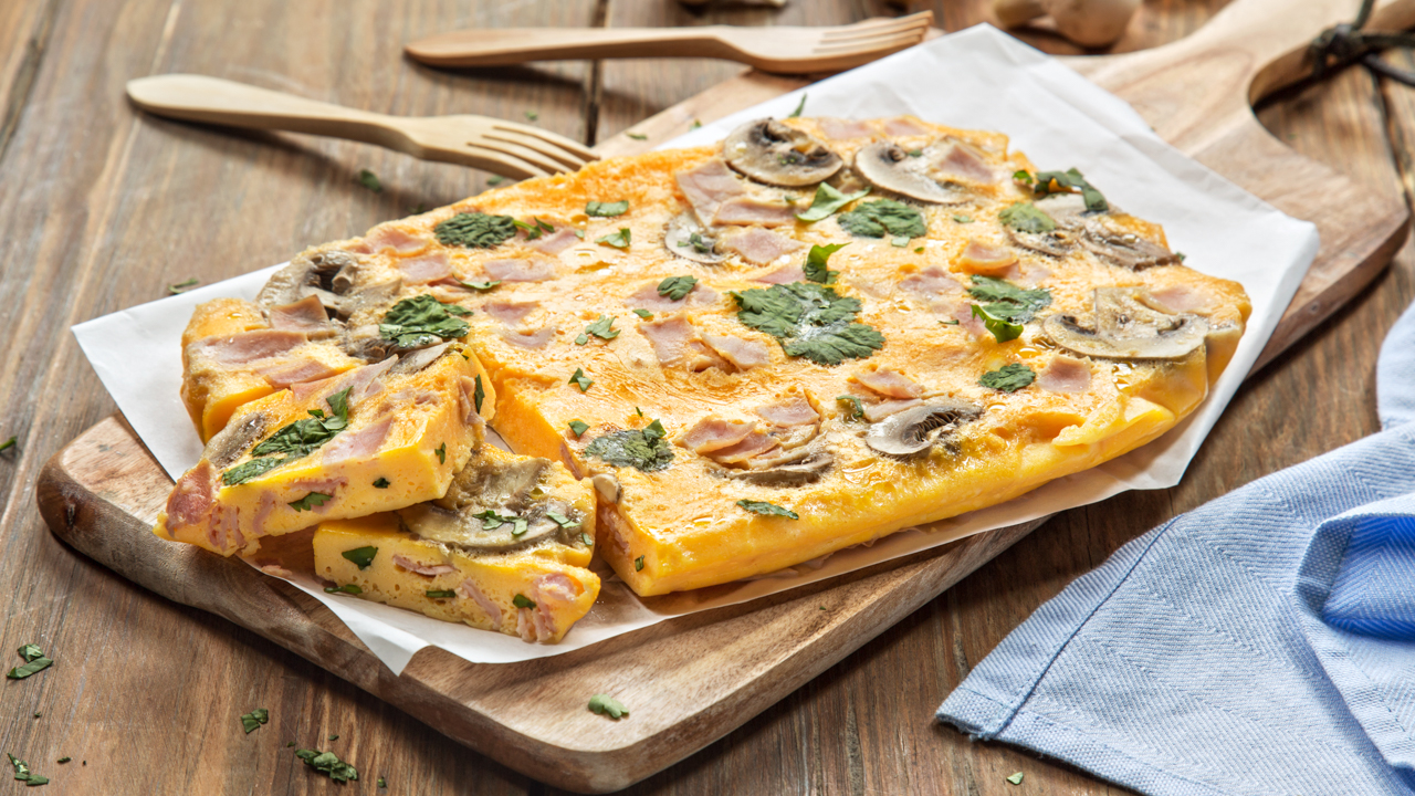 Forre o tabuleiro superior da bandeja de vapor com uma folha de papel vegetal humedecida e untada com azeite e verta a mistura de ovos.