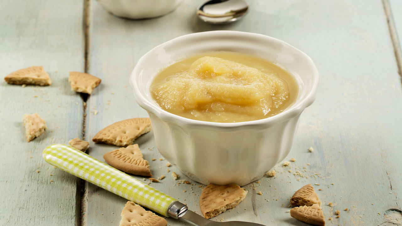 Coloque no copo a de maçã madura e a pera aos pedaços pequenos, junte a água e programe 13 minutos, a 100 °C, na velocidade 1.