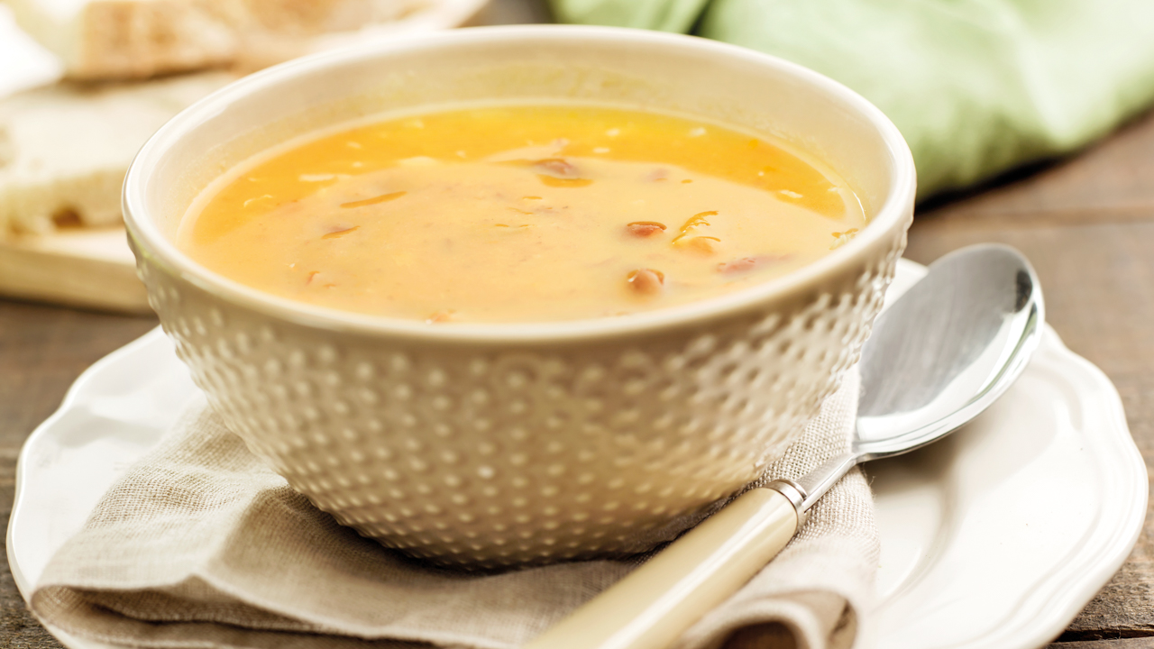 Quando terminar o tempo programado, triture a sopa durante 2 minutos: comece na velocidade 3 e vá aumentando, progressivamente, até à velocidade 8. Por último, acrescente um fio de azeite.