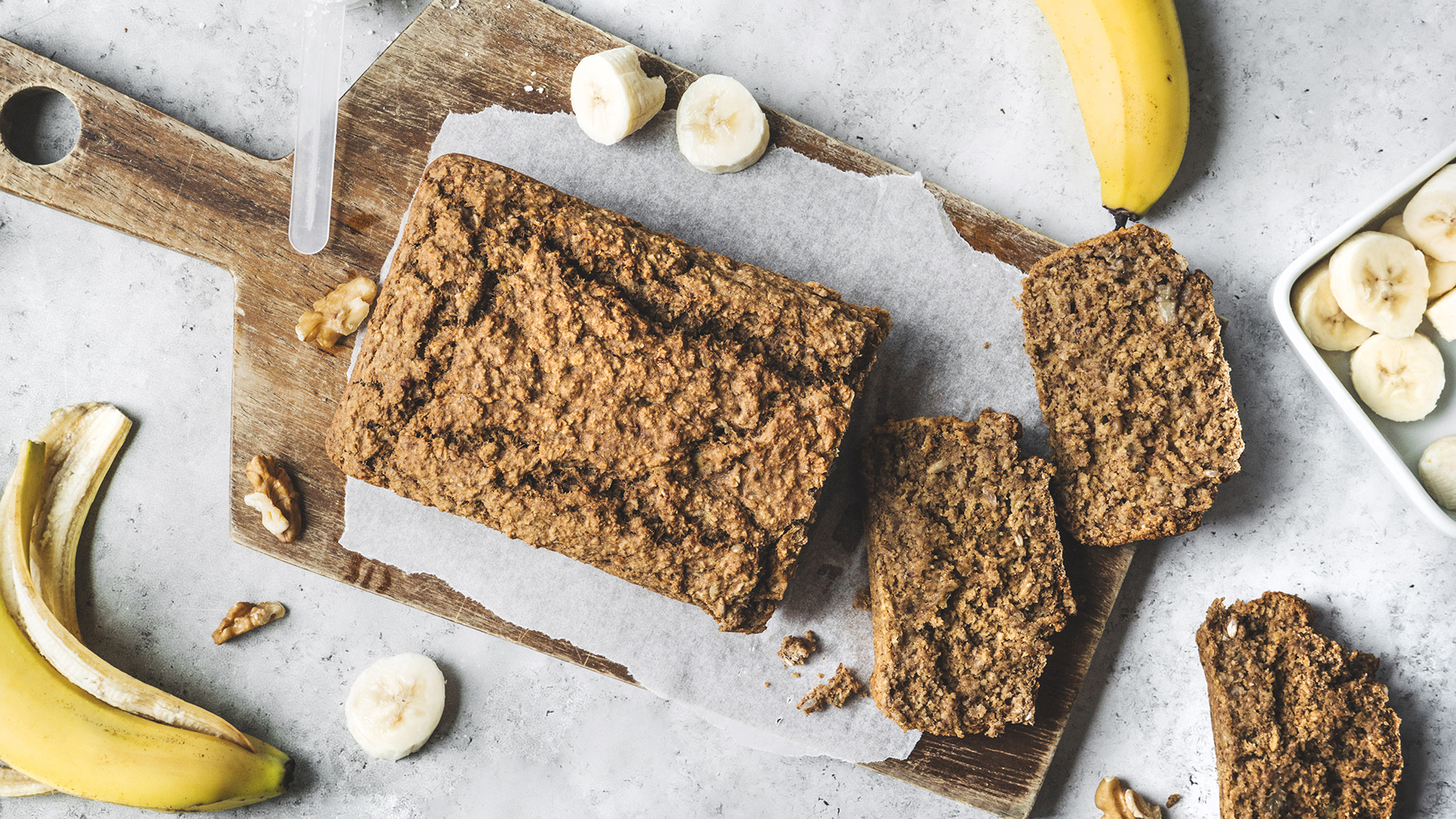 Coloque no copo a farinha integral, a farinha de amêndoa, o fermento, a proteína Way Up de baunilha, o ovo, a clara, a banana cortada às rodelas e a bebida de soja. Programe 30 segundos na velocidade 5.
