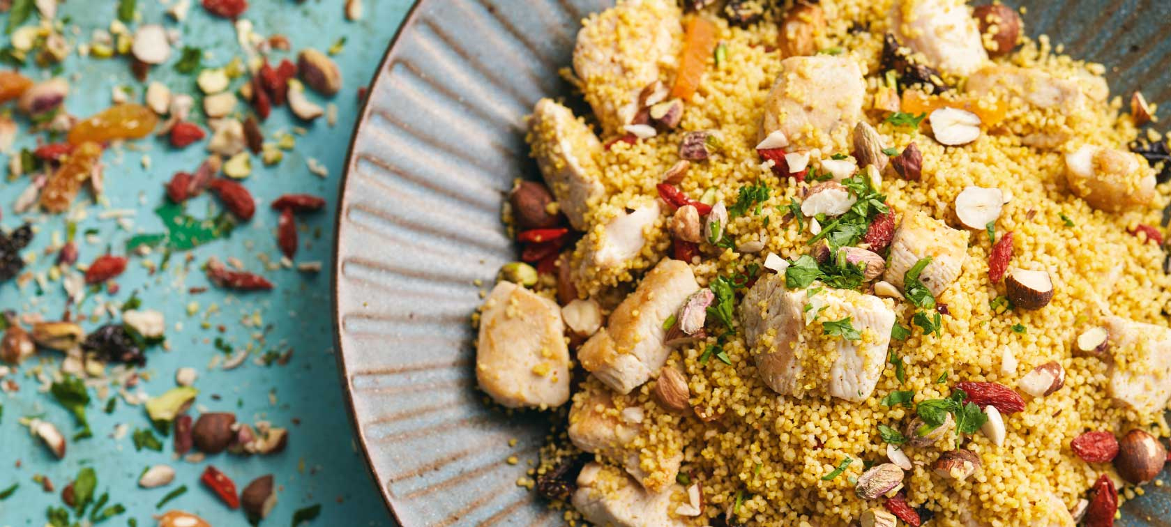 Cuscuz com frango e frutos secos