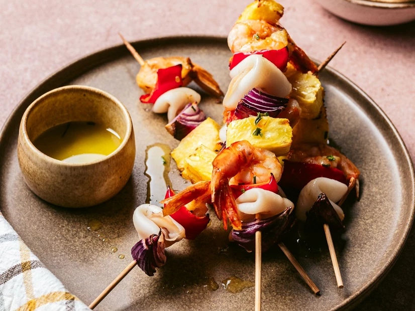Espetadas de Lulas com Camarão