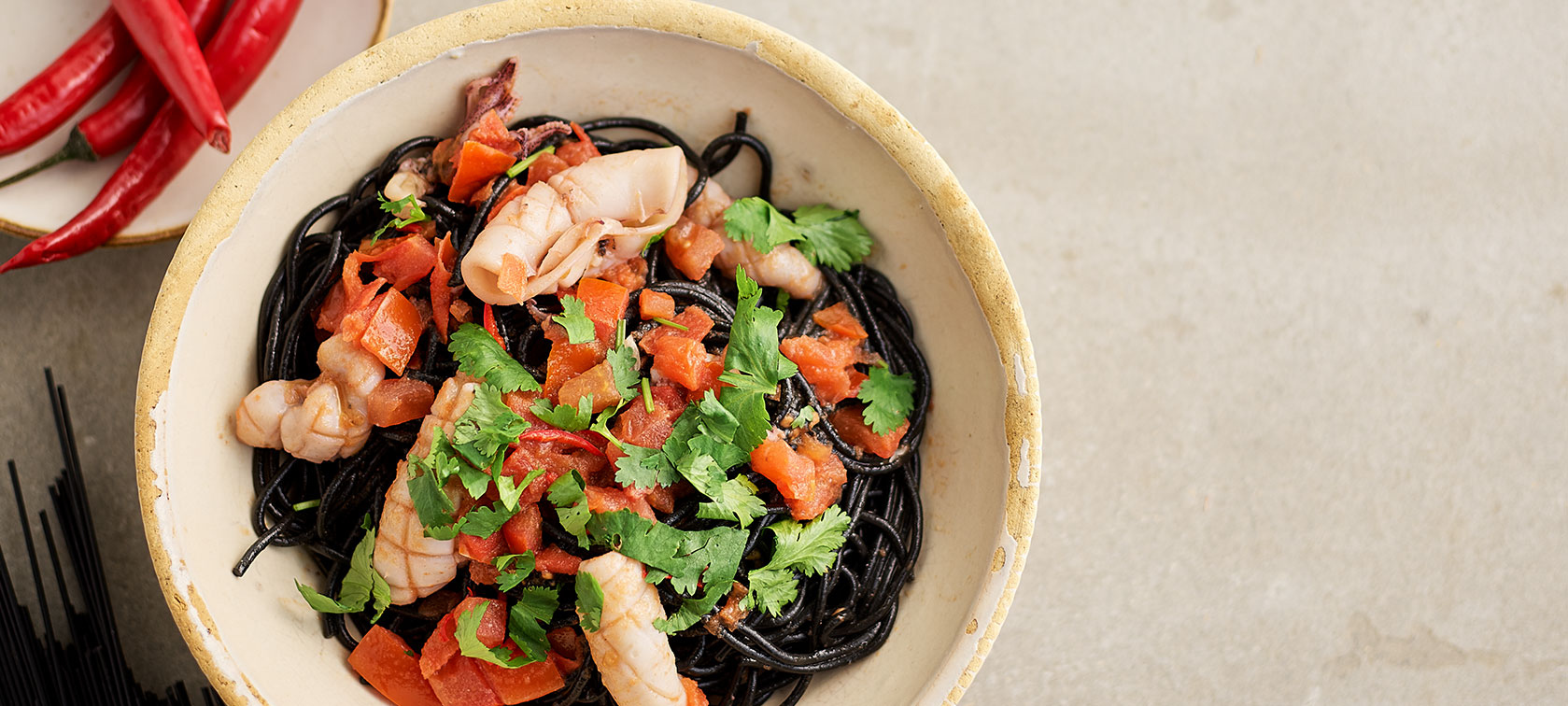 Arroz negro com lulas e citrinos