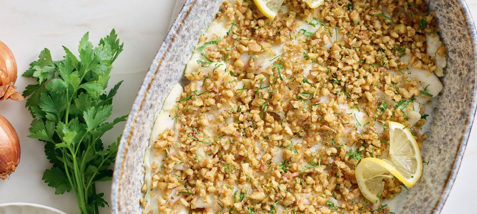Adicionar à lista Adicionar ao plano Adicionar aos favoritos Peixe Filetes de peixe espada preto com crosta de noz e limão 30 min Fácil